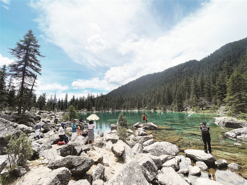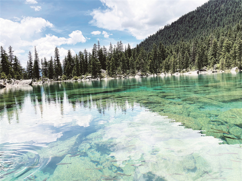 措普溝匯集了山川景物的精華,雪峰、冰川、原始森林、湖泊、河流、峽谷、瀑布、溫泉、草原、野生動(dòng)植物、藏族風(fēng)情。特別是被雪山半環(huán)繞的措普湖,有山有水,顏色層層遞進(jìn),清澈見(jiàn)底,在陽(yáng)光的折射下波光粼粼。