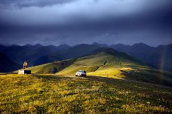 玉科草原位于四川甘孜州道孚縣境內(nèi),距縣城65千米,融藍(lán)天、白云、雪山、林木、草原、溪流為一體,被譽(yù)為“康巴阿勒泰”。
