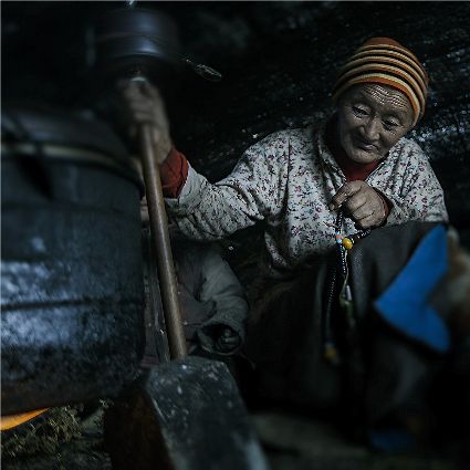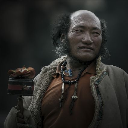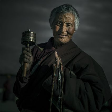 每當(dāng)我手持相機(jī)時(shí),對他們始終懷有一種敬畏,我捕捉到他們眼神里流露出虔誠??粗?jīng)筒上“甲多”的飛轉(zhuǎn),我陶醉了,醉在那轉(zhuǎn)經(jīng)筒的旋轉(zhuǎn)舞動(dòng),醉在那轉(zhuǎn)經(jīng)筒傳誦的故事,醉在那一張張手持轉(zhuǎn)經(jīng)筒的面孔,還有,還有因祈禱音符助推而從未停止的轉(zhuǎn)經(jīng)筒……