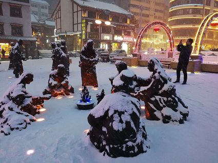 “風(fēng)雨送春歸,飛雪迎春到。已是懸崖百丈冰,猶有花枝俏?!?月4日傍晚,大片大片的雪花,從昏暗的天空中紛紛揚(yáng)揚(yáng)飄落下來。霎時(shí)間,山川、河流、城市,全都籠罩在白蒙蒙的大雪之中。黃昏的雪,下得深切切的,好象有千絲萬縷的情緒似的,又像海水一般洶涌,能夠淹沒一切,還有一絲揭開藏頭露尾般的裸露感。雪花形態(tài)萬千、晶瑩透亮,好象出征的戰(zhàn)士,披著銀色的盔甲,又像是一片片白色的戰(zhàn)帆在遠(yuǎn)航…… 落光了葉子的柳樹上,掛滿了毛茸茸、亮晶晶的銀條兒;冬夏常青的松樹和柏樹,堆滿了蓬松松、沉甸甸的雪球。那一片雪花在空中舞動(dòng)著各種姿勢,或飛翔,或盤旋,或直直地快速墜落,鋪落在地上?!昂鋈缫灰勾猴L(fēng)來,千樹萬樹梨花開”——這是雪的燦爛;一場瑞雪,扮美了康定,年味籠罩的康定城,嫵媚妖嬈。無論是背水姑娘、有著年味兒的將軍橋,還是大紅燈籠高高掛的康定門,都在雪后別有一番景致。與美景合影、和朋友玩雪都是最佳選擇。在風(fēng)雪中,交警不畏嚴(yán)寒默默堅(jiān)守崗位 ,指揮交通疏堵保暢。他們的身影在皚皚風(fēng)雪路上站成一道道最美的風(fēng)景,溫暖了康定。從早上六點(diǎn)開始,康定的環(huán)衛(wèi)工就迎著刺骨的寒風(fēng),開始了除冰雪保通暢的行動(dòng),在積雪覆蓋的康定城,早起的商販樂呵呵地做起了買賣;民工迎著雪后的寒風(fēng)出門務(wù)工,他們是最可敬的人。