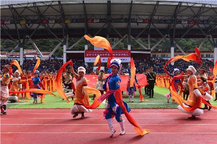 “本屆少數(shù)民族傳統(tǒng)體育運(yùn)動(dòng)會(huì)的會(huì)徽以格薩爾王賽馬登位為基本形象,由字母‘SC’組成的騎手代表‘四川’,數(shù)字‘15’組成了昂揚(yáng)奔騰的‘馬’為主體的形象,代表‘15屆民運(yùn)會(huì)’。這既有藏民族特色,又顯得美觀大方。”在開(kāi)幕式現(xiàn)場(chǎng),來(lái)自杭州的陳琳興致勃勃地說(shuō)。