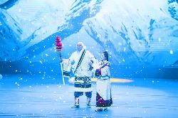《圣潔甘孜·亞丁情》大型歌舞劇取材于稻城亞丁三座雪山分別象征慈悲、智慧、力量的民間傳說和民俗文化,根據(jù)當(dāng)?shù)靥赜械某绨葑匀缓捅Wo(hù)環(huán)境意識(shí)的三怙主文化,以圣潔甘孜亞丁的三座雪山為背景,融入傳統(tǒng)頌唱風(fēng)格、勞作場景、傳統(tǒng)藥泥面具與古裝,通過《豐收》、《打墻歌》、《敬酒歌》、《弦子舞》、《情歌對唱》、《亞丁三怙主》、《迎金剛》、《雄雞起舞》、《贊金剛》、《見解脫》等具有生活氣息和民俗色彩的歌舞表演,表達(dá)人們對雪山的感恩和敬畏,展現(xiàn)藏民族的淳樸善良,講述在落實(shí)黨的民族宗教政策和扶貧攻堅(jiān)行動(dòng)中,人們在雪山下的樂觀心態(tài)和幸福生活。
