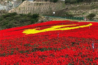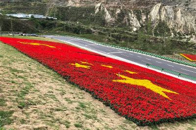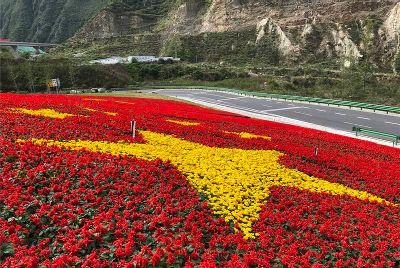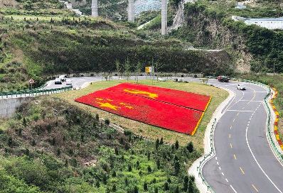 7月1日是中國共產(chǎn)黨98周歲的生日。四川甘孜藏族自治州瀘定縣用23萬多株鮮花,在雅康高速路瀘定連接線出口處擺了鮮紅的黨旗、國旗造型,以此表達(dá)對(duì)黨的感情。