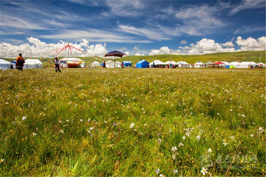 拉日馬大草原,藏語譯為神仙居住的地方,寬闊的草原、豐茂的水草、茫茫的-、蜿蜒清澈的拉曲河,構(gòu)成的一幅天然畫卷。加之當(dāng)?shù)啬撩窦儤愕拿耧L(fēng)、散落在草原上星星點點的牛群、帳篷,給人一種回歸之感。倘若是在夏季,草原上成為花的海洋,四處飄溢著花的芬芳和奶香,在醉人的季節(jié)里,定會使人留連忘返。