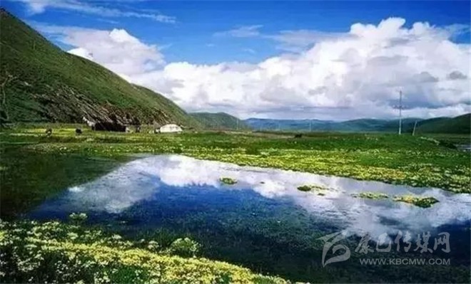 四周有草原、森林、雪山相伴,風(fēng)景如畫。每到夏天,湖面上開滿各種奇花異草,滿谷幽香,在清澈透底的湖水襯托下,美不勝收。