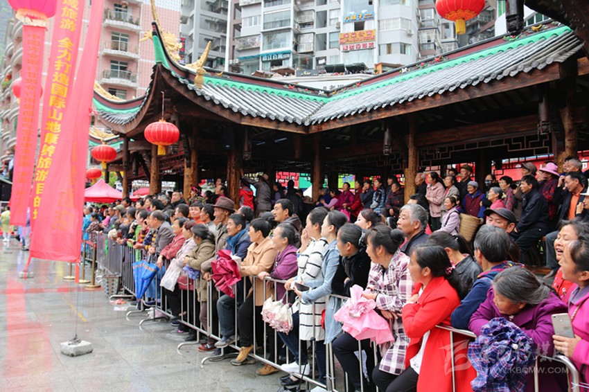 瀘定橋廣場(chǎng)觀看演出的人群。