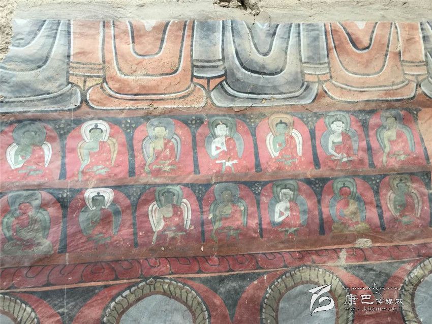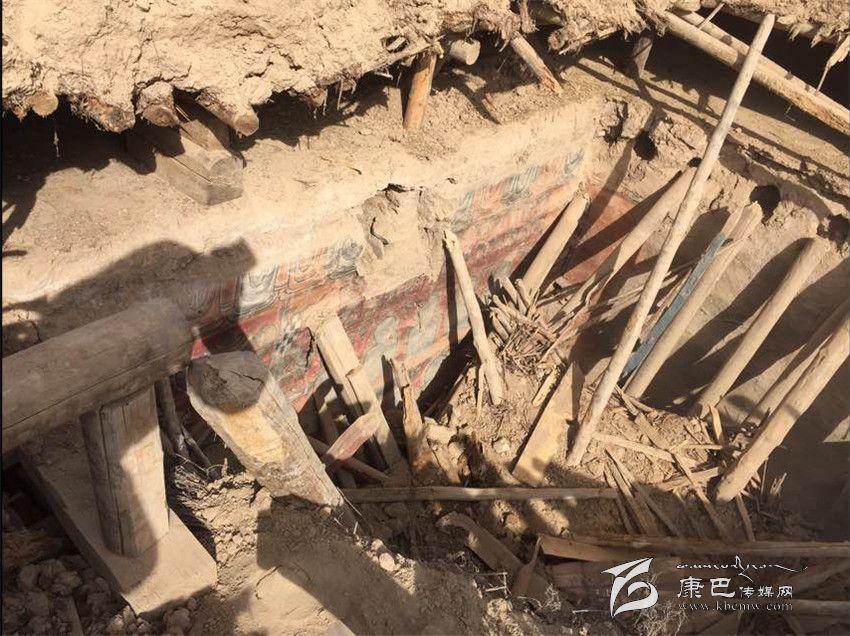 最近,德格縣俄支鄉(xiāng)的一座老寺廟屋頂突然垮塌,里面發(fā)現了多處壁畫。筆者得知此處發(fā)現老壁畫消息后,立即聯系該寺的澤仁多吉堪布,把堪布提供的相關壁畫圖片轉發(fā)給了中國著名佛教考古學家溫玉成,西南民族大學教授、著名學者根秋丁孜,民間唐卡收藏家根秋扎西、羅布,著名畫家耷·曲培、亞馬澤仁等專家進一步論證,確定該壁畫的年代和價值。