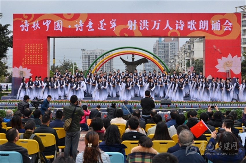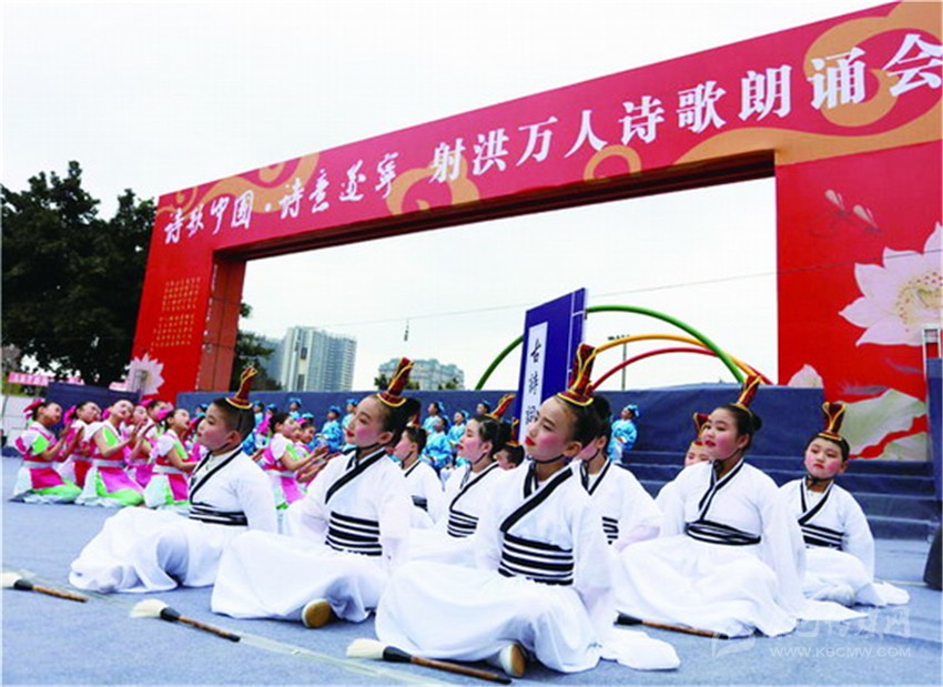 據(jù)了解,本次活動(dòng)是《詩(shī)刊》2016年度陳子昂詩(shī)歌獎(jiǎng)系列活動(dòng)之一,參與人數(shù)之多、規(guī)模之大,在射洪縣尚屬首次?,F(xiàn)場(chǎng)由射洪中小學(xué)生和企事業(yè)單位組成的方陣和演出隊(duì)伍,以載歌載舞或配樂(lè)詩(shī)朗誦等形式登臺(tái)表演, 內(nèi)容以經(jīng)典詩(shī)詞為主,也有圍繞當(dāng)前中心工作而創(chuàng)作的新詩(shī)。這是文化的傳承,更是血脈的延續(xù)。參加詩(shī)歌朗誦會(huì)的最小的4歲,或許他們不懂文字背后的美,并不理解字里行間透露出的人生況味,但他們?cè)谏浜檫@樣的文學(xué)滋 養(yǎng)中出生、成長(zhǎng)。