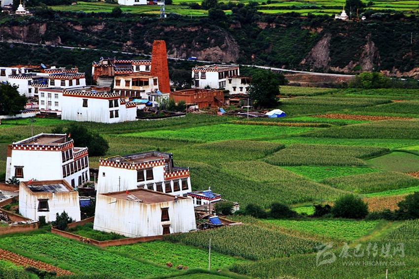 鄉(xiāng)城,這塊尚未被旅游熱烤的處女地,處處散發(fā)純真的氣息。走進(jìn)鄉(xiāng)城,除了頗具江南之韻的山水田園風(fēng)光。首先映亮你眼簾的,便是依山傍水的白色藏寨。春暖花開的日子里,波光粼粼的小河蜿蜒蛇行于谷地,一座座白藏房沿河散布,隨意而自然地排成村落。散在風(fēng)里的炊煙中,似如飄著一縷青稞酒的“糧香”。步入青稞地里,心曠神怡中,偶爾聽見幾聲愉悅的勞動號子里裹著清亮聲弦、山歌余音……。此情此景,誰又能不為白色村落締造者的神來之筆而嘆服?讀過古書名詞的人都會想到一個詞——世外挑源,而熟悉藏傳佛經(jīng)的人,則會為找到傳說中人間凈土——“香巴拉”而激動不已。
