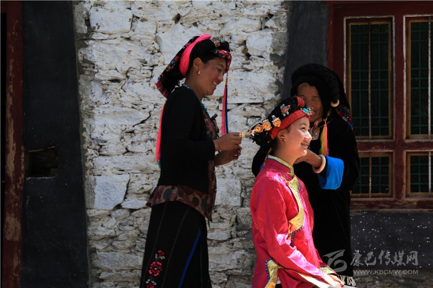 丹巴女性成年禮的形成,是有多方面的因素綜合促成的。首先,嘉絨藏族在歷史上對(duì)女性不歧視,女性成年當(dāng)家,招婿上門也是常有的事,并且形成當(dāng)?shù)鼗橐鰻顟B(tài)的重要組成部分。此外,丹巴婚俗中的擇偶相對(duì)而言是較為開放和自由的,成年男女青年可以自由求婚擇偶,而成年的界定是男性18歲,女性17歲。成人禮則可以說(shuō)是女性成年的公示方式。