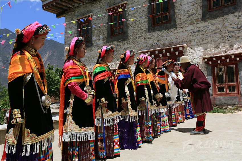 丹巴嘉絨藏族女子的成年禮一般以自然村落為單位,舉行的時(shí)間需請(qǐng)喇嘛或貢巴擇吉日,或在農(nóng)事有閑的時(shí)候。參加成年禮的成年女性人數(shù)不定,可集體、也可以單獨(dú)舉行,其原則是女子必須歲足17歲;若已足17歲,如遇農(nóng)事繁忙,也可適當(dāng)延期。
