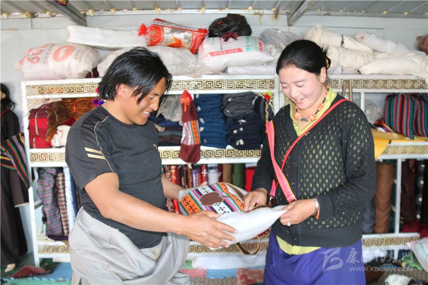 安孜鄉(xiāng)作為白玉縣海拔較高的鄉(xiāng)鎮(zhèn)之一,夏天是十分短暫的,連日來(lái)的晴好天氣,也透著絲絲寒氣。牧民阿剛想要量身定做一套過(guò)冬的藏裝,9月13日,他來(lái)到白玉縣阿察鎮(zhèn),一家民族服飾商貿(mào)公司吸引了他的目光?!拔覀冞@里的服裝面料是本地羊毛和從浙江進(jìn)的上等面料,做工考究,很多工序是純手工制作,服裝樣式你可以根據(jù)你的喜好指定,我們包你滿(mǎn)意。”店員仁真熱情地介紹。聽(tīng)了仁真的介紹,阿剛用手捻了一下服裝用料的質(zhì)地,看到印有“祥陽(yáng)措”商標(biāo)的精美包裝袋,商店里擺放的五彩斑斕、高端大氣的藏式男女服裝,他有些動(dòng)心了?!吧a(chǎn)這些服裝的都是我們納塔鄉(xiāng)的牧民,你可以考察我們的服裝用料、生產(chǎn)流程,再作打算?!比收鏌崆檠笠绲亟榻B說(shuō)。