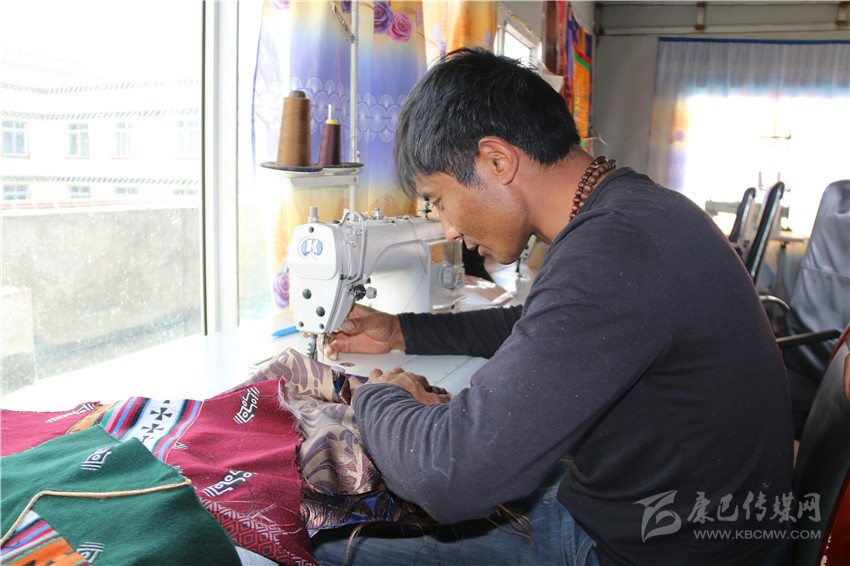 在白玉縣阿察鎮(zhèn)街上,有一處很不起眼的服裝加工店,店里擺放著各色質(zhì)地考究的服裝面料和時(shí)尚的藏族服裝。白玉縣祥陽(yáng)措青年悅民族服飾商貿(mào)有限責(zé)任公司經(jīng)理在熱是納塔鄉(xiāng)納塔村的牧民,他穿著自己生產(chǎn)的藏裝。在工作室里,看到牧民或操作縫紉機(jī)、或用手工精心制作藏裝,他露出了開(kāi)心的笑容。他一再叮囑員工,一定要仔細(xì),要拿出最好的本事,用一流的技藝,不僅要讓顧客滿(mǎn)意,還要打出公司的服裝品牌,質(zhì)量是公司和員工的立身之本。
