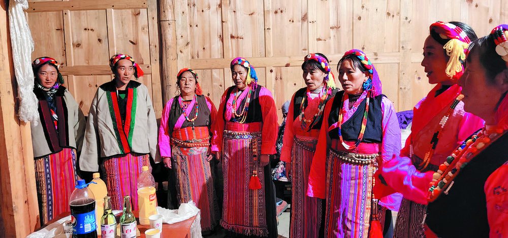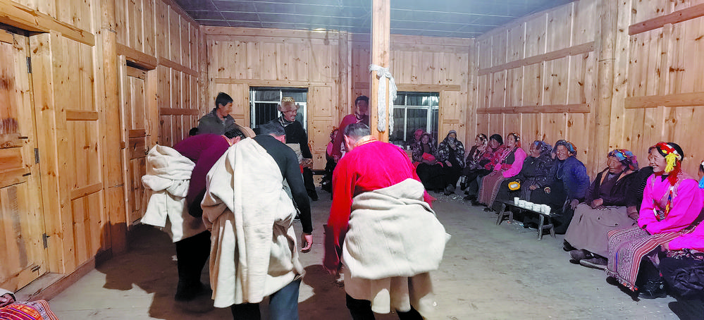 夜臨了,月低垂,整條山谷陷入了藍(lán)色的世界,近處是墨綠,遠(yuǎn)處是淡綠,雄渾的大山在綠的撫摸下也變得婀娜起來(lái);古老寨子的火塘也燃起來(lái)了,勞作了一天的普米人聚在一起,跳起了原始氏族人群圍火而舞的傳統(tǒng)舞蹈,曲調(diào)悠揚(yáng)且古樸動(dòng)人。