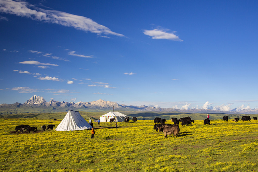 芒康崗的弦子熱情奔放,怎么美怎么來,講究旋律的婉轉(zhuǎn),不管是金沙江邊的索多西、安白溪,還是噶拖河畔的卡莫定、徐中村,還是悠悠瀾滄江邊的鹽井和曲孜卡,處處美韻撩人。漫曲一首蜿蜒天際,如芒康崗的山河,延轉(zhuǎn)在蒼茫的橫斷山南。