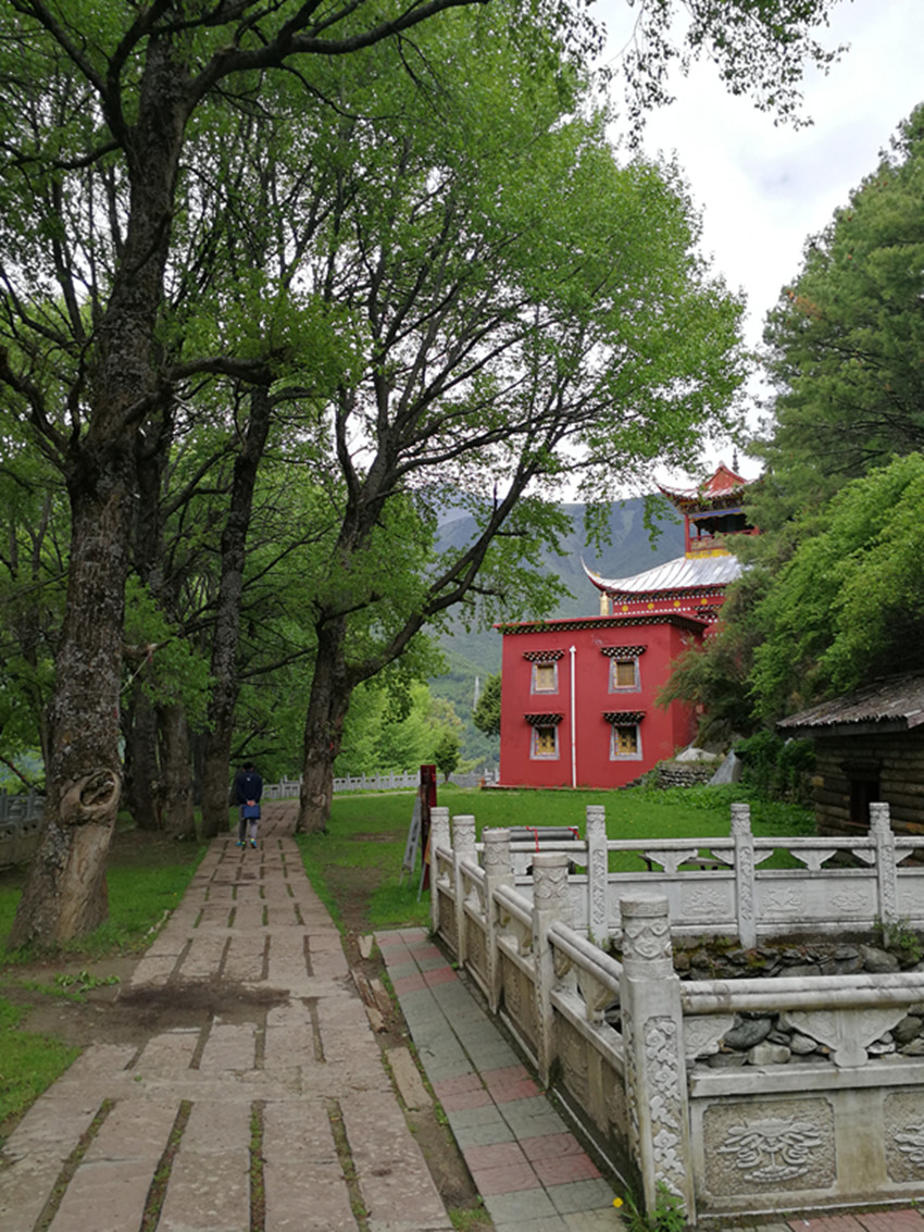 中國民俗有“大年初一不竄門”,這一天,康定人很多都會去寺廟燒香敬佛。前年大年初一,我便去了觀音閣。進(jìn)門處,有專供燒紙錢的地方。再上階梯,有長列的白色佛塔,進(jìn)寺就可點(diǎn)燈朝拜。出了觀音閣,我順道去找獅子巖。公路一側(cè)的堡坎已將原來的小徑斬?cái)?,翻上堡坎,小徑幾乎已沒了蹤跡。再仰頭望,獅子巖已是掩映在濃密的綠樹雜叢間。長在右側(cè)的花椒樹,已不見蹤影。幾株高大的白楊樹遮天蔽日,最大的都長到盆口粗了?!鞍倌陿淠尽保@無疑還是當(dāng)年那幾棵白楊樹了。我艱難地鉆過荒叢爬到獅子巖腳下,那“祭祀臺”上如過去一樣擺放有貢品,旁邊和樹枝上掛有經(jīng)幡,但周圍仍沒有一絲煙熏火燎過的痕跡。