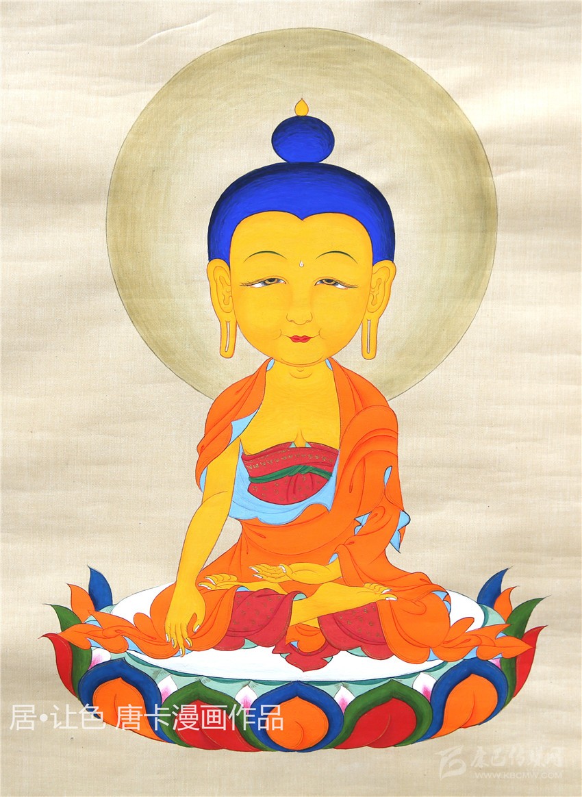 唐卡是藏族最具代表性的藝術(shù)門類之一,在其千年的傳承歷史中吸收融合了印度、尼泊爾等多地的藝術(shù)元素,發(fā)展成為極具雪域特色和審美價(jià)值的藝術(shù)形式。傳統(tǒng)唐卡缺乏立體感和形象感,畫面層次模糊,人物形象單薄,不利于民族文化傳承,“對(duì)于不懂畫的人來(lái)說(shuō),這種畫法他們看不懂。”基于此,居·讓色對(duì)唐卡繪畫技法作了改良,結(jié)合現(xiàn)代漫畫,以寫實(shí)的手法,實(shí)現(xiàn)活態(tài)傳承、永續(xù)流傳目的。
