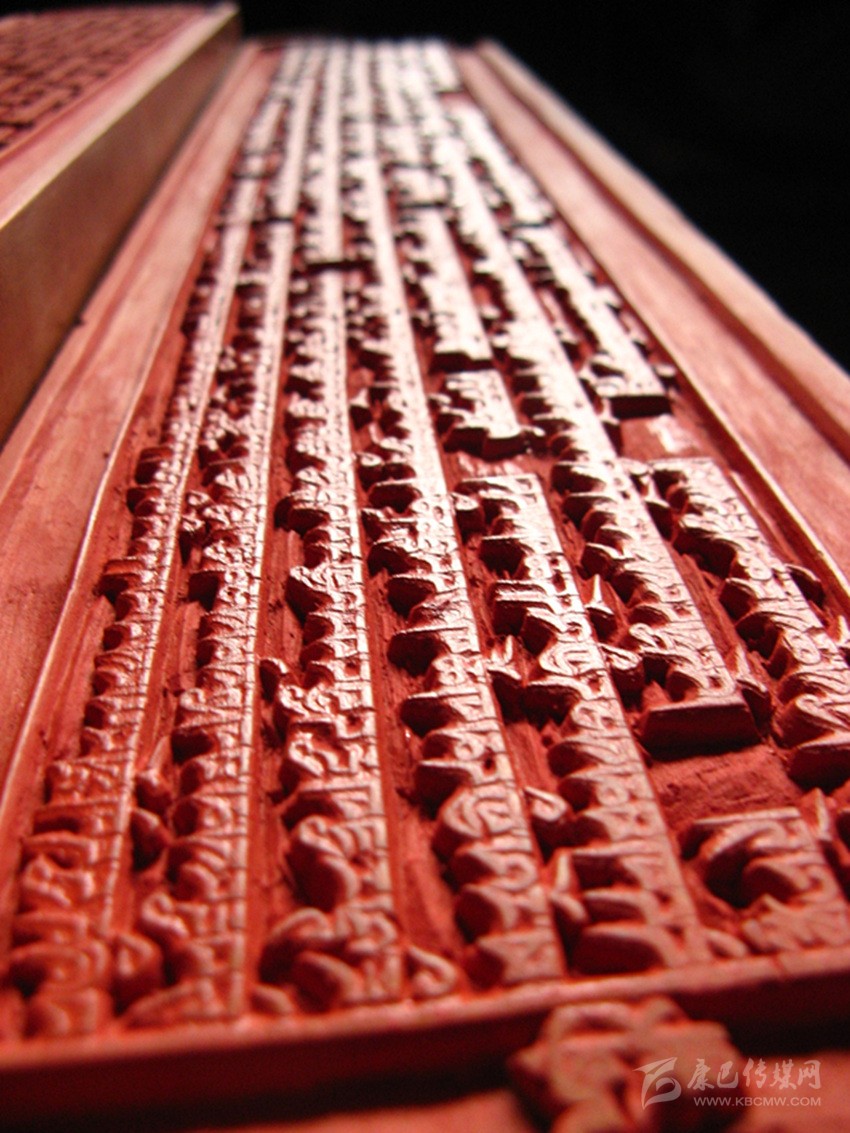 公元1730年2月3日,正式在倫珠頂開(kāi)始進(jìn)行校對(duì)和雕刻工作。為了提高印版的質(zhì)量,土司規(guī)定實(shí)行三級(jí)審校制度,即書(shū)法家們負(fù)責(zé)對(duì)寫(xiě)好的版文進(jìn)行兩校,以便及時(shí)修改錯(cuò)漏。然后經(jīng)編審師們復(fù)審和終審后,方可交刻工雕刻。刻完后,編審師們?cè)谇鍢由线€要進(jìn)行三校。版面改動(dòng)較多的進(jìn)行重刻,改動(dòng)較少的進(jìn)行補(bǔ)刻。規(guī)定的校次不準(zhǔn)任意減少或改動(dòng)。雕刻工作由噶瑪班珠和次白總負(fù)責(zé)。經(jīng)過(guò)60多名書(shū)寫(xiě)員、10名編審師、400余名刻工以及100多名雜工的艱苦勞動(dòng),浩繁的《甘珠爾》刻版工程于在公元1734年完成。印版所用經(jīng)費(fèi),折成茶塊共計(jì)7622包(每包約20公斤)。