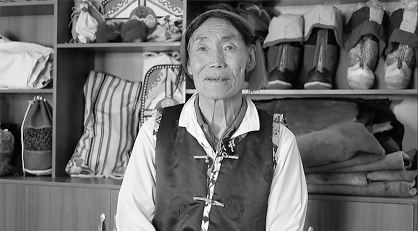 其父手巧心靈,為了養(yǎng)家,將漢地工藝融入本土傳統(tǒng)的皮革制造技藝中,一時間,紅牛皮實用功能不僅不減,還極具美感裝飾功能。十余歲起,舊波開始跟著父親學習紅牛皮及多種皮具的制作技藝。