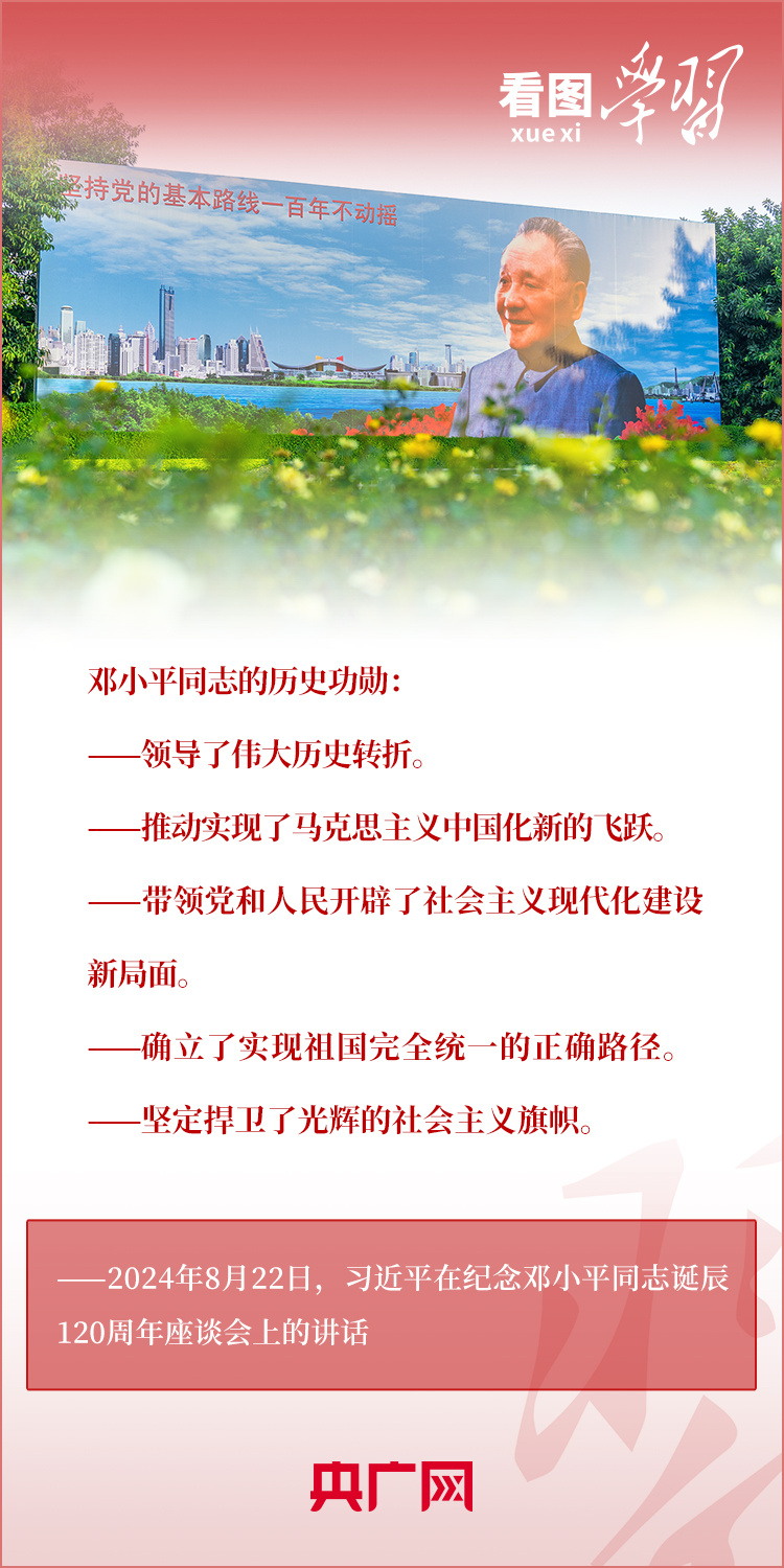 8月22日,習(xí)近平總書記在紀(jì)念鄧小平同志誕辰120周年座談會(huì)上發(fā)表重要講話指出,鄧小平同志的歷史功勛是全方位的、開創(chuàng)性的,對(duì)中國和世界的影響是深刻的、長遠(yuǎn)的??倳洀?qiáng)調(diào),對(duì)鄧小平同志最好的紀(jì)念,就是把他開創(chuàng)的中國特色社會(huì)主義事業(yè)繼續(xù)推向前進(jìn)。我們要緊緊圍繞以中國式現(xiàn)代化全面推進(jìn)強(qiáng)國建設(shè)、民族復(fù)興偉業(yè)這個(gè)中心任務(wù),繼往開來,奮發(fā)進(jìn)取。一起來學(xué)習(xí)!