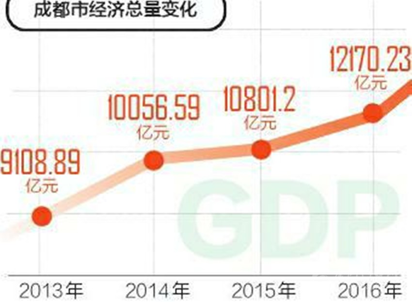 2014年,成都GDP首次突破萬億元大關(guān),此后兩年又連跨兩個(gè)千億臺階,首位城市的地位穩(wěn)若磐石。