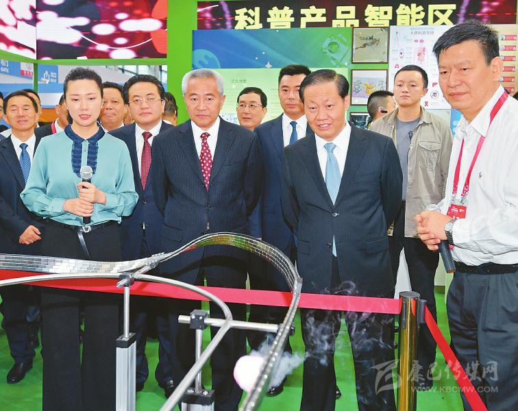 9月5日,全國政協(xié)副主席邵鴻,省委書記、省人大常委會(huì)主任彭清華及參會(huì)嘉賓參觀科博會(huì)展館,了解科技創(chuàng)新成果和轉(zhuǎn)化應(yīng)用情況。 歐陽杰 攝