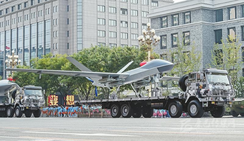 在兩輛指揮引導(dǎo)車帶領(lǐng)下,由攻擊-2無(wú)人機(jī)、攻擊-11無(wú)人機(jī)和反輻射無(wú)人機(jī)組成的無(wú)人作戰(zhàn)第2方隊(duì)通過天安門,向世界展示了中國(guó)無(wú)人作戰(zhàn)平臺(tái)的又一嶄新成就。
