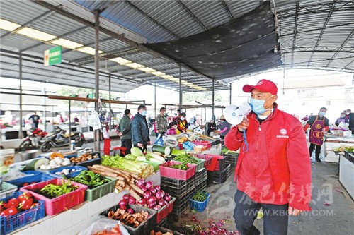 “喇叭哥”志愿服務很帶勁邱時春在農(nóng)貿(mào)市場用喇叭喊話,提醒大家戴好口罩。