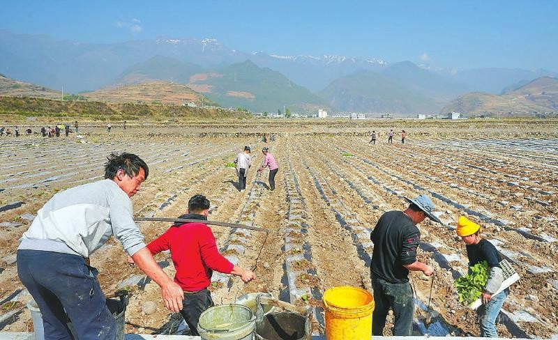 越西縣普雄鎮(zhèn)群眾正在地里耕耘。