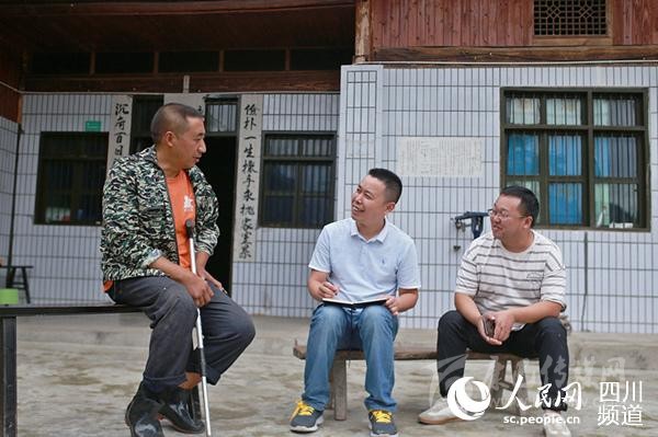 通坪村第一書記、駐村工作隊隊長楊方春(中)帶領(lǐng)幫扶隊工作人員走訪唐六慶家。元啟 攝