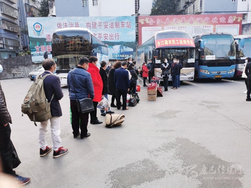 四川新聞網(wǎng)成都2月21日訊(記者 李丹)2月19日早上8時,在四川省瀘州市合江縣客運中心,全縣首趟農(nóng)民工返崗務(wù)工專車正要出發(fā)。90名合江籍農(nóng)民工在接受體溫檢測和手續(xù)檢查后,登上合江首列赴粵返崗專車,“點對點、一站式”到達深圳龍崗,奔赴各自的崗位復(fù)工。