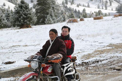 胡昌升搭乘牧民的摩托前往不通公路的波雄高山牧場(chǎng)。