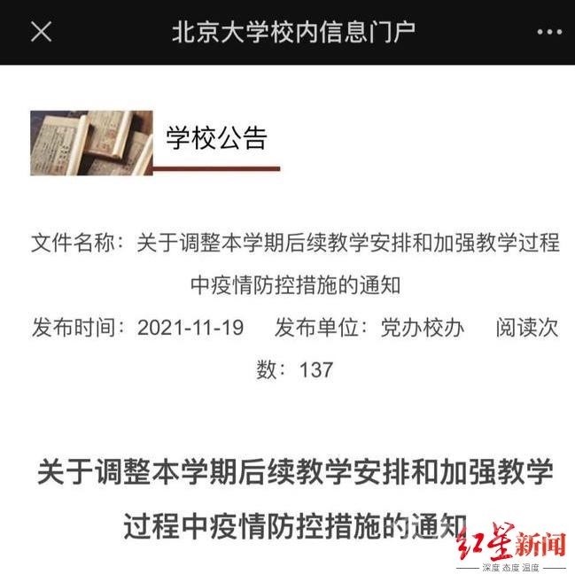 如北京大學(xué)日前發(fā)布通知,學(xué)生自2022年1月7日起放寒假;中國(guó)人民大學(xué)明確自2022年1月4日至9日期末考試,自2022年1月10日起,學(xué)生放寒假;北京物資學(xué)院稱,學(xué)生寒假自2022年1月9日開始。紅星新聞?dòng)浾咦⒁獾剑鶕?jù)校歷顯示,三所高校原計(jì)劃自2022年1月17日放寒假,放假時(shí)間均比原計(jì)劃提前一周左右。