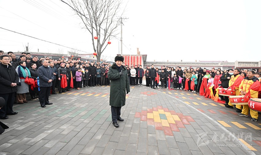 村文化廣場(chǎng)上十分熱鬧,村民們打起威風(fēng)鑼鼓、扭起秧歌歡慶佳節(jié)??吹娇倳?shū)記來(lái)了,人們高興地歡呼起來(lái)。習(xí)近平對(duì)鄉(xiāng)親們說(shuō),我們黨的根本宗旨就是為人民群眾辦好事,為人民群眾幸福生活拼搏、奉獻(xiàn)、服務(wù)。我們?nèi)缙诖蜈A了脫貧攻堅(jiān)戰(zhàn),如期實(shí)現(xiàn)了全面建成小康社會(huì)目標(biāo),現(xiàn)在踏上了全面建設(shè)社會(huì)主義現(xiàn)代化國(guó)家新征程。建設(shè)現(xiàn)代化國(guó)家離不開(kāi)農(nóng)業(yè)農(nóng)村現(xiàn)代化,要繼續(xù)鞏固脫貧攻堅(jiān)成果,扎實(shí)推進(jìn)鄉(xiāng)村振興,讓群眾生活更上一層樓,在推進(jìn)農(nóng)業(yè)農(nóng)村現(xiàn)代化中越走越有奔頭。