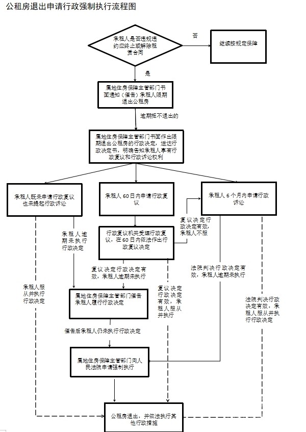 根據(jù)《指導(dǎo)手冊(cè)》,公租房退出以承租人行為和情形不同分為退回和騰退兩種方式,屬地住房保障主管部門對(duì)承租人到期拒不退出房屋及設(shè)施設(shè)備的,應(yīng)作出責(zé)令其限期騰退公租房的書面決定,逾期仍不履行的,可依法向人民法院申請(qǐng)行政強(qiáng)制執(zhí)行,“剛?cè)岵?jì)”解決公租房退房難問題。