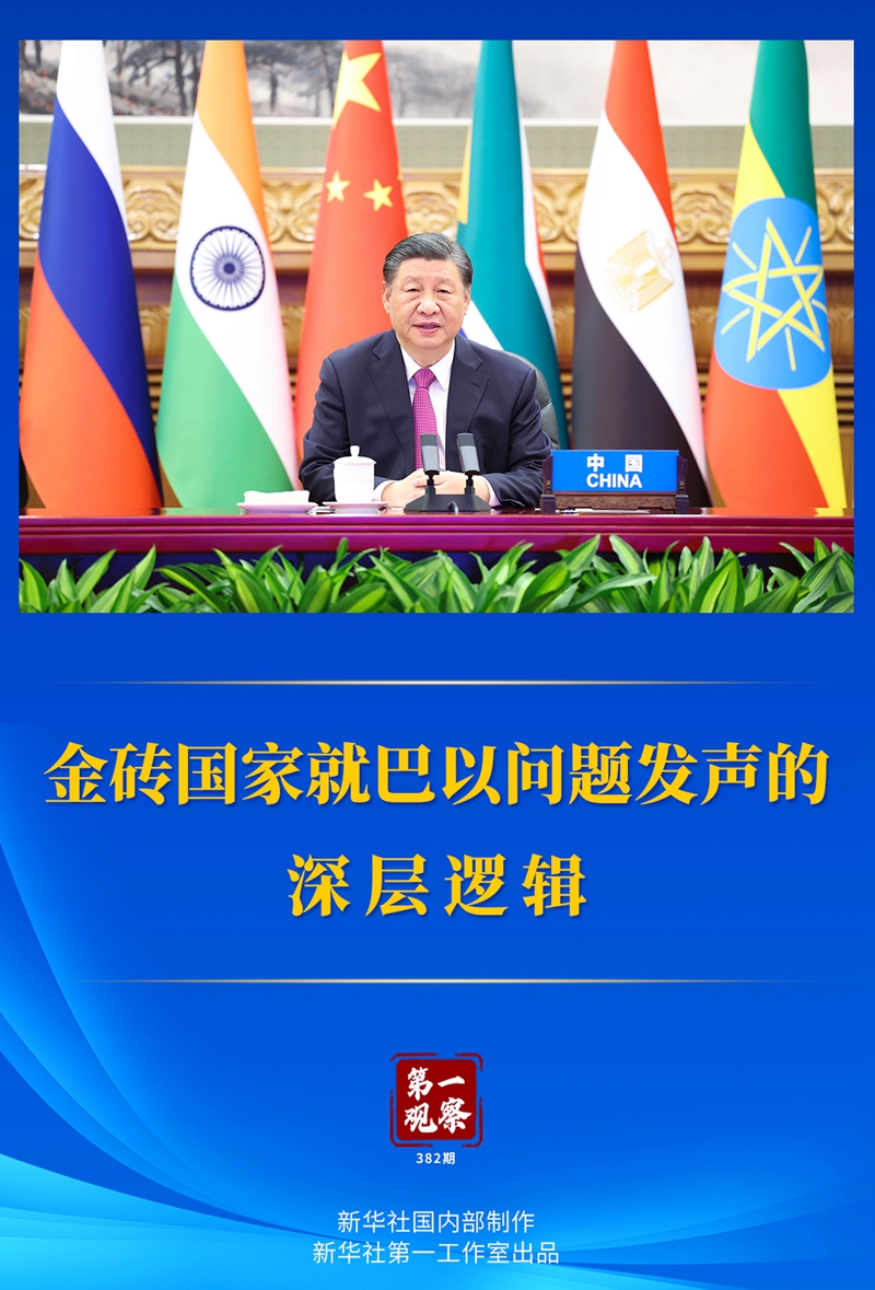 “當(dāng)前形勢(shì)下,金磚國(guó)家就巴以問題發(fā)出正義之聲、和平之聲,非常及時(shí)、非常必要。”在講話中,習(xí)近平主席開宗明義。