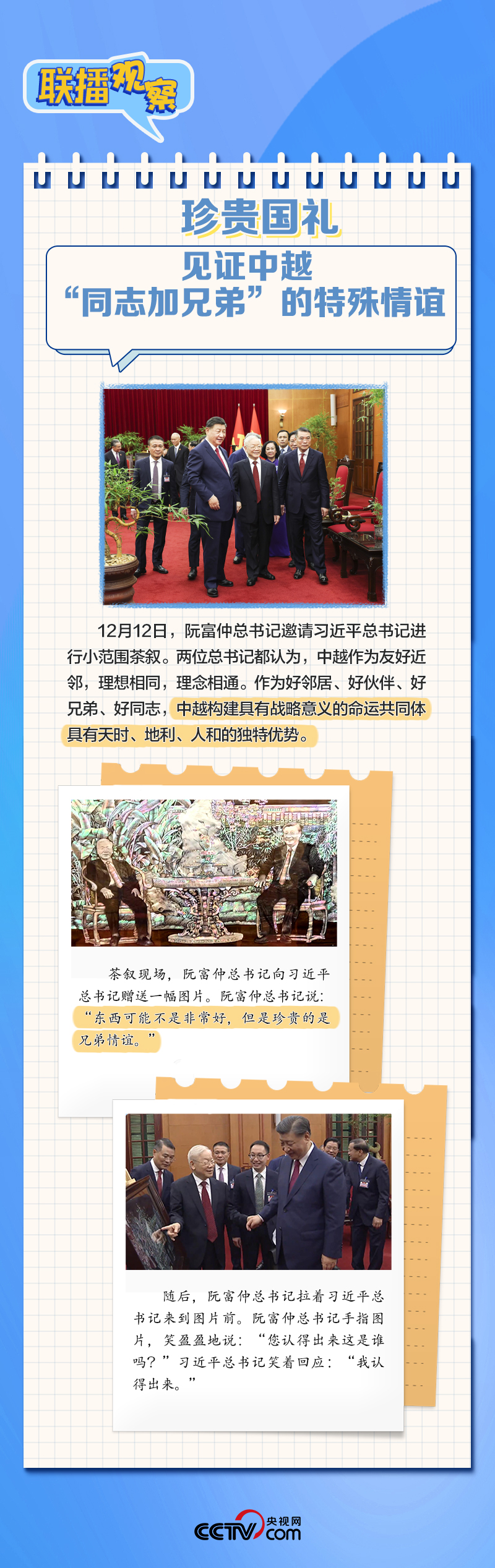 聯(lián)播+“到鄰居家串門、到同志家做客”是中越兩黨兩國傳統(tǒng)友誼的生動(dòng)寫照。