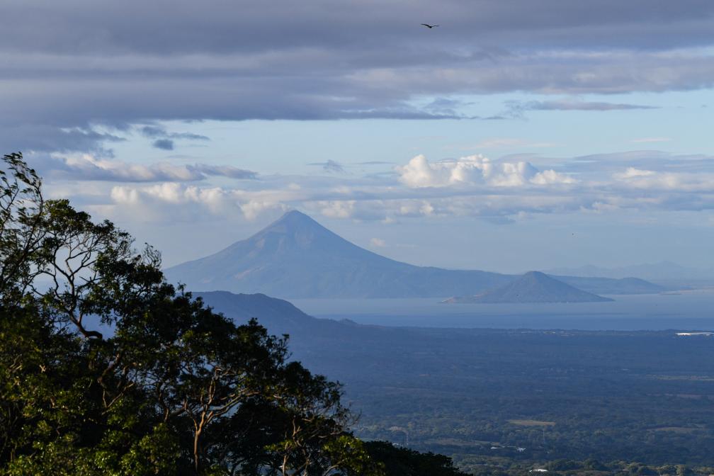 這是在尼加拉瓜首都馬那瓜附近拍攝的馬那瓜湖及遠處的莫莫通博火山。
