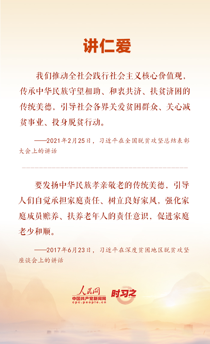 春節(jié)作為中華民族最重要的傳統(tǒng)節(jié)日,蘊(yùn)含著我國(guó)傳統(tǒng)文化的精髓。習(xí)近平總書記向來對(duì)中華傳統(tǒng)節(jié)日和中華傳統(tǒng)文化十分重視,并將中華優(yōu)秀傳統(tǒng)文化的時(shí)代價(jià)值概括為“講仁愛、重民本、守誠(chéng)信、崇正義、尚和合、求大同”六個(gè)方面。一起重溫總書記的重要論述,傳承弘揚(yáng)中華優(yōu)秀傳統(tǒng)文化。