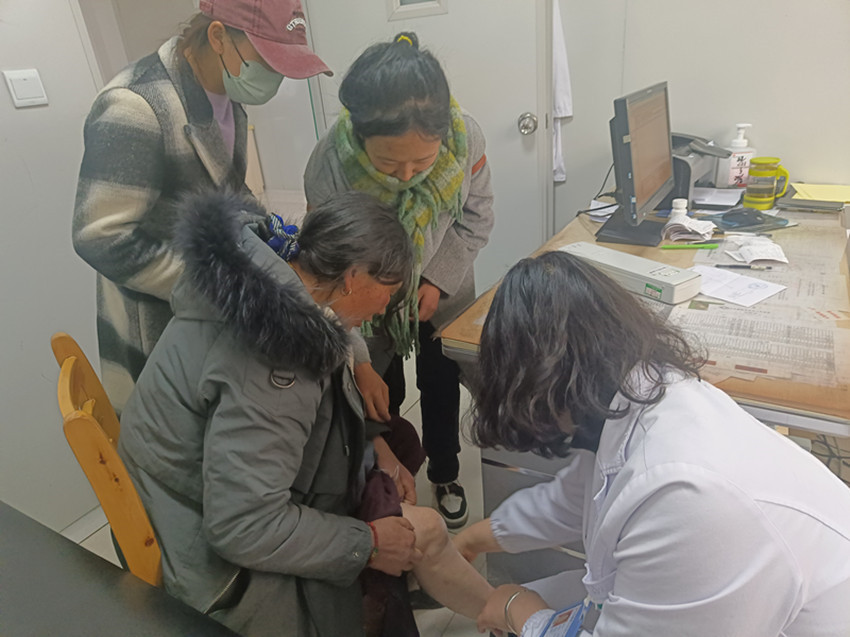 醫(yī)務(wù)人員正在為患者診治。