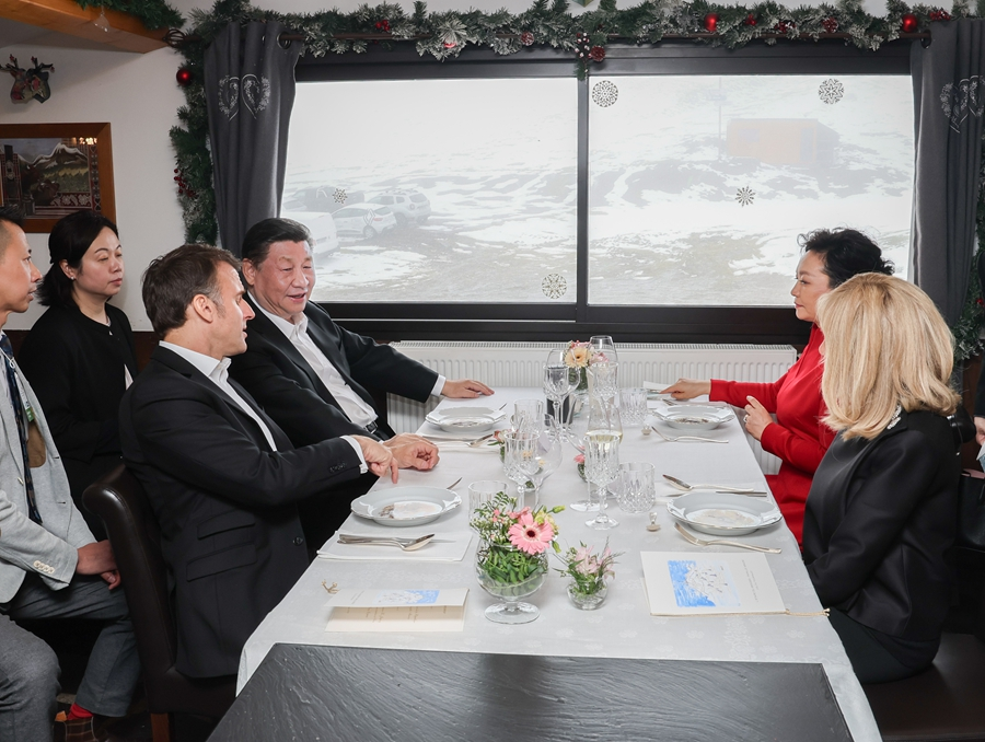 ??前一天,雙方發(fā)表4份聯(lián)合聲明,簽署綠色發(fā)展、航空、農(nóng)業(yè)食品、商務(wù)、人文等領(lǐng)域近20項(xiàng)雙邊合作文件。此時在春雪紛飛、云海浩渺中,兩國元首“不打領(lǐng)帶”溝通交流,加深彼此理解。此情此景,與兩國元首2019年的“尼斯夜談”、“豫園茶敘”,2023年的“松園會晤”,一脈相承。