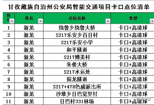 14爐霍轄區(qū)交通違法抓拍點位