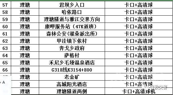 7理塘轄區(qū)交通違法抓拍點位