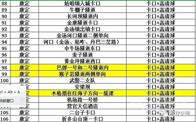 16海螺溝轄區(qū)交通違法抓拍點位