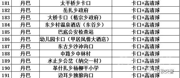 18丹巴轄區(qū)交通違法抓拍點位