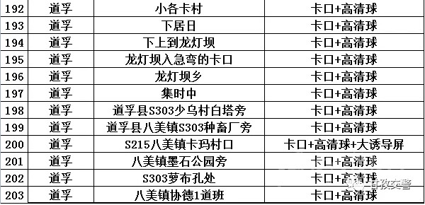 8鄉(xiāng)城轄區(qū)交通違法抓拍點位