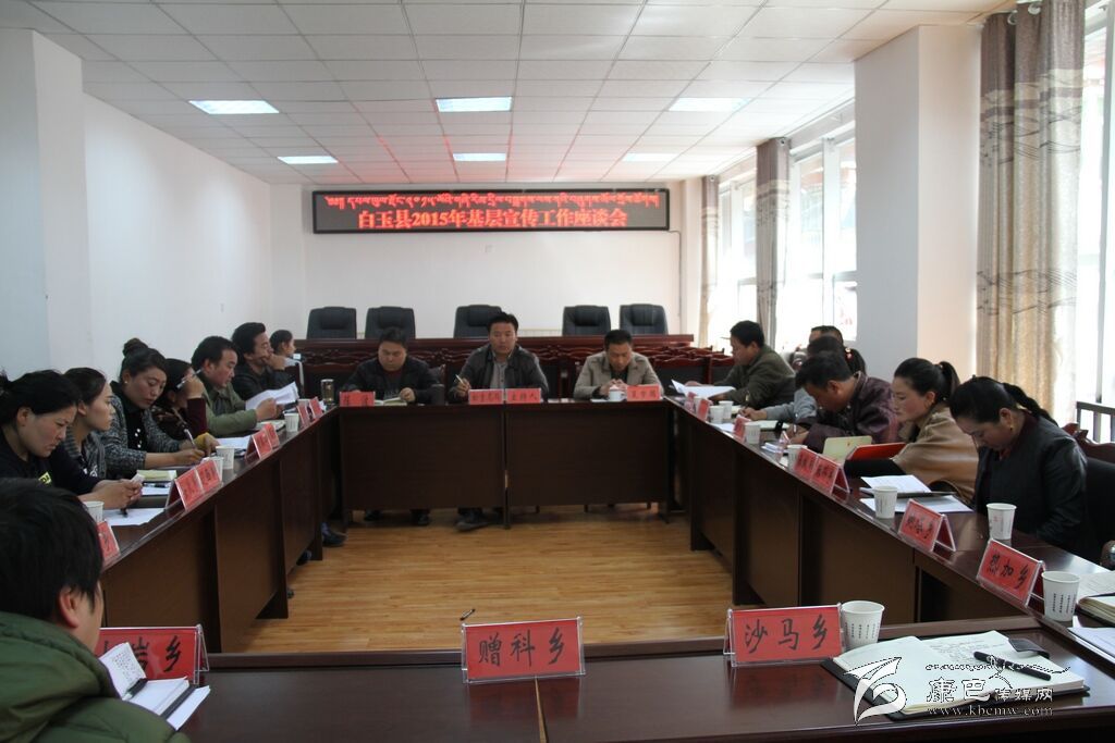 本網(wǎng)訊(向冬梅文/圖)為進(jìn)一步明確基層宣傳員的工作職責(zé),不斷推動(dòng)白玉縣基層宣傳思想文化工作扎實(shí)有效開(kāi)展,近日,白玉縣委宣傳部召開(kāi)2015年基層宣傳思想文化工作座談會(huì)。17個(gè)鄉(xiāng)(鎮(zhèn))、4個(gè)寺廟管理委員會(huì)的宣傳委員都參加了會(huì)議。