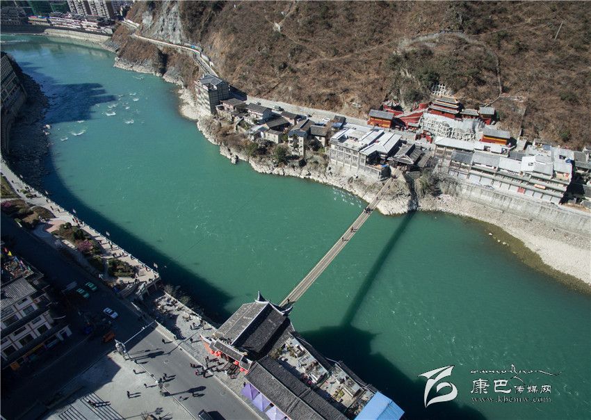 長(zhǎng)征之路發(fā)生了翻天覆地的變化,昔日的艱難險(xiǎn)阻正逐漸變成康莊通道。圖為從空中俯看今日瀘定橋。(新華社發(fā))