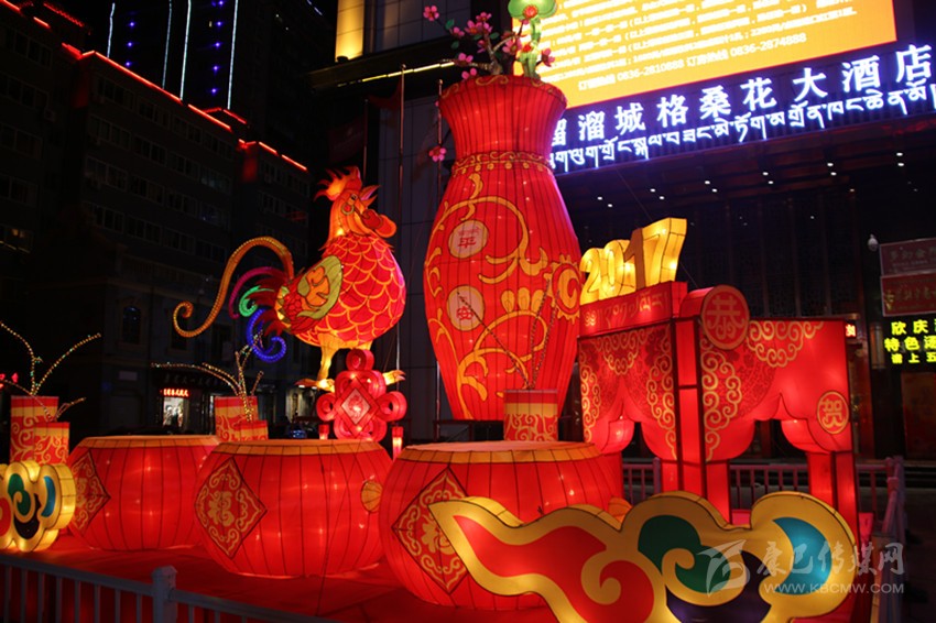 據(jù)該公司負(fù)責(zé)本次花燈設(shè)計(jì)的設(shè)計(jì)師鄭才學(xué)介紹,本次花燈每組主題不同,以全新的設(shè)計(jì)理念、歡樂(lè)祥和的氛圍、獨(dú)具特色的造型,向世人展現(xiàn)獨(dú)特的甘孜魅力。向陽(yáng)橋頭的花燈主題為新春快樂(lè),整個(gè)花燈呈火紅色,巨型“春”字搭配藏族繪畫(huà)中最常見(jiàn)但寓意深刻的吉祥八寶圖案,以及舞獅子、大紅燈籠、中國(guó)結(jié)等融為一體,為來(lái)到康定的客人第一時(shí)間送上熱情的新春?jiǎn)柡?;情歌廣場(chǎng)的花燈主題為鼓舞康定,以被譽(yù)為中國(guó)民間藝術(shù)瑰寶的大紅鼓作為人民歡慶盛世、贊美和諧的情感載體,充滿雄渾之氣,寓意著我州在時(shí)代發(fā)展的浪潮中擊鼓奮進(jìn)、得勝而鳴;情歌大廈門(mén)口的花燈主題為金雞送平安,以中國(guó)傳統(tǒng)生肖年文化為背景,配合中國(guó)結(jié)和爆竹,喜慶而不失莊重,寓意著為全州人民送去平安吉祥;將軍橋頭的花燈主題為童子賀歲,火紅的燈籠搭配喜慶的福娃及爆竹,為全州各族人民送上新年的祝福;17隊(duì)三岔路口的花燈主題為和諧康定,巨大的荷花藝術(shù)造型結(jié)合動(dòng)感的LED光源,造型高低錯(cuò)落,寓意和諧、和美,體現(xiàn)在州委、州政府的堅(jiān)強(qiáng)領(lǐng)導(dǎo)下,人民安居樂(lè)業(yè),和諧美滿。最霸氣、最吸引人的當(dāng)屬情歌公園主題為吉祥多福的花燈,整個(gè)花燈由六個(gè)直徑一米半左右的福字燈籠,環(huán)繞一個(gè)直徑達(dá)3米左右的福字燈籠組合而成,主燈籠的燈柱高大而厚重,環(huán)繞的六個(gè)燈柱上配有吉祥八寶圖案,寓意著全州物產(chǎn)豐富,人民的生活紅紅火火,一年更比一年好。
