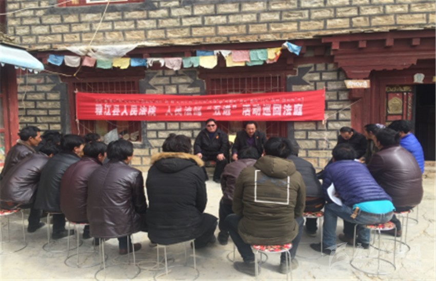 由于布孜村交通落后,給村民的出行帶來了極大的不便,也制約著村里的經(jīng)濟(jì)發(fā)展,為了有更好的生活條件,大部分村民選擇搬遷到離村不遠(yuǎn)的鄰縣理塘縣生活。在長期的生活接觸中,兩地村民常為一些小事“扯皮”,有了糾紛也不知道如何用法律來解決。為解決布孜村村民法律意識(shí)淡薄的問題,雅江縣人民法院專門組建宣講隊(duì)深入基層,向已搬遷,但戶籍所在地仍屬雅江縣的布孜村村民分析案情、講解法律知識(shí)。